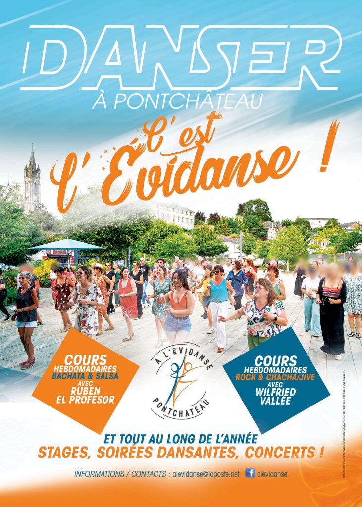 L’association A L’EVIDANSE propose des cours hebdomadaires de danses : bachata, salsa, rock, chacha, pour débutants et intermédiaires principalement.