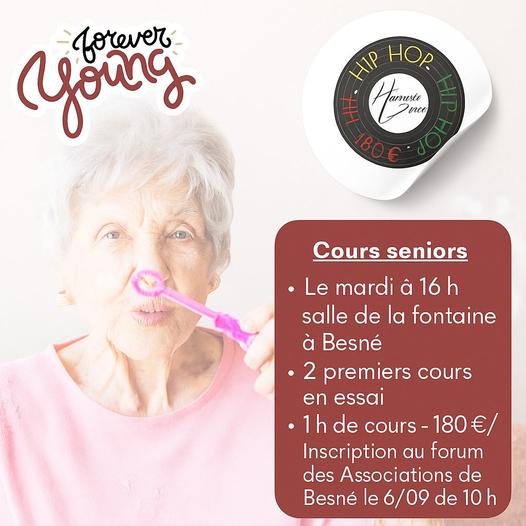 L’association Harmonie Danse est axée sur des cours de Hip Hop accessible de 9 ans à 99 ans. Il s’agit de danse chorégraphiée, en groupe, à ne pas confondre avec du Break Danse qui est une autre variante du Hip Hop.