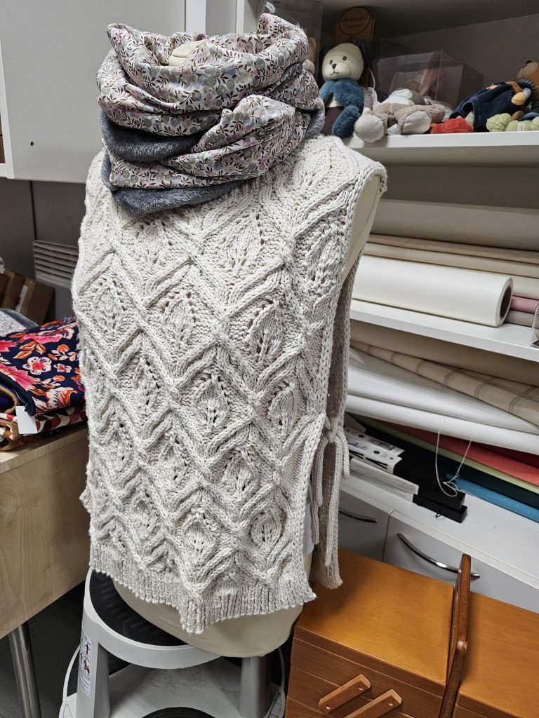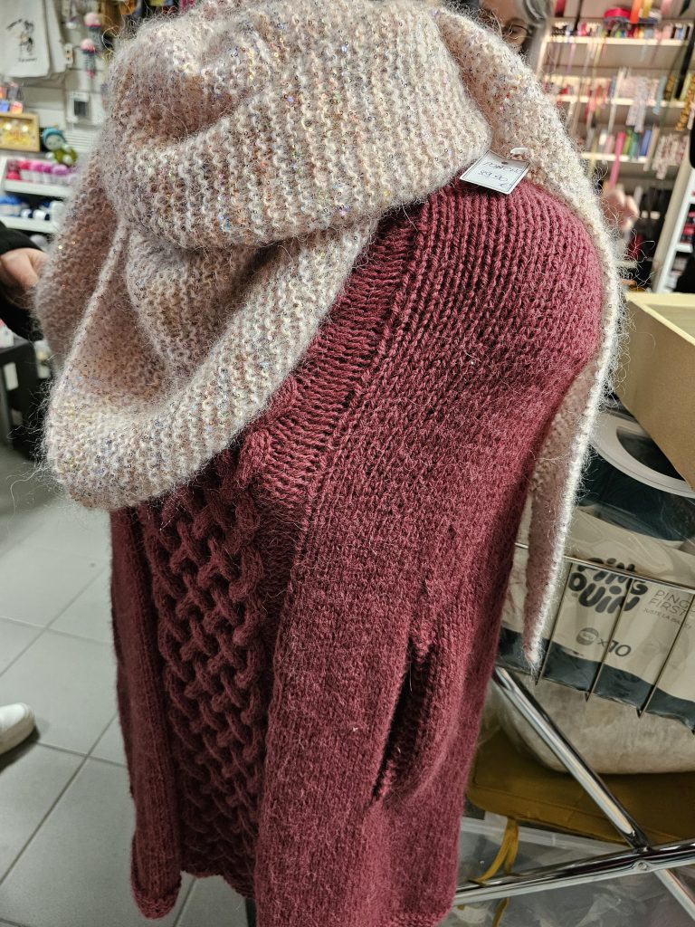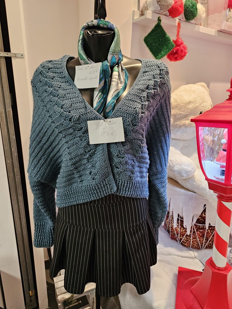 Nous réalisons régulièrement des vêtements et accessoires en tricot pour montrer ce qu’il est possible de réaliser. Nos modèles sont en suite à vendre.
